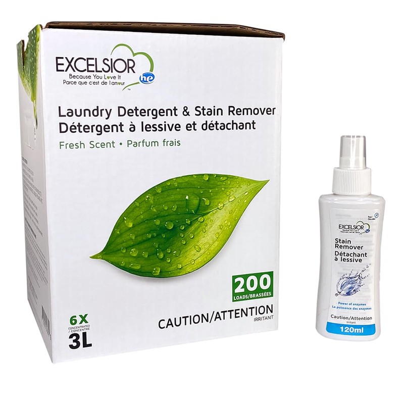Excelsior Laundry Detergent with Stain Remover - Concentrated Liquid - Fresh Scent - Eco-Friendly, Biodegradable, Solvent, and Phosphate Free - for Standard and High-Efficiency Washers - 3 Liter Box…