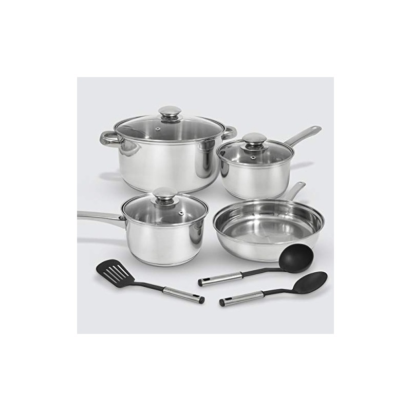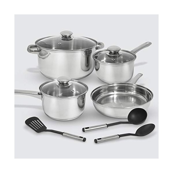 ExcelSteel w/Encapsulated Base & Tools Versatile for Any Kitchen Stainless Cookware Set, 10 Pc