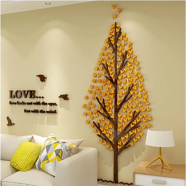 EXCEREY アクリル素材 3D立体 カートゥーンハートツリー壁ステッカー リビングルーム・ベッドルーム装飾用 壁ステッカー 防水防湿仕様 モダンシンプルデザイン 壁デコレーションシール コーヒーブラウンの枝+オレンジの葉(大)