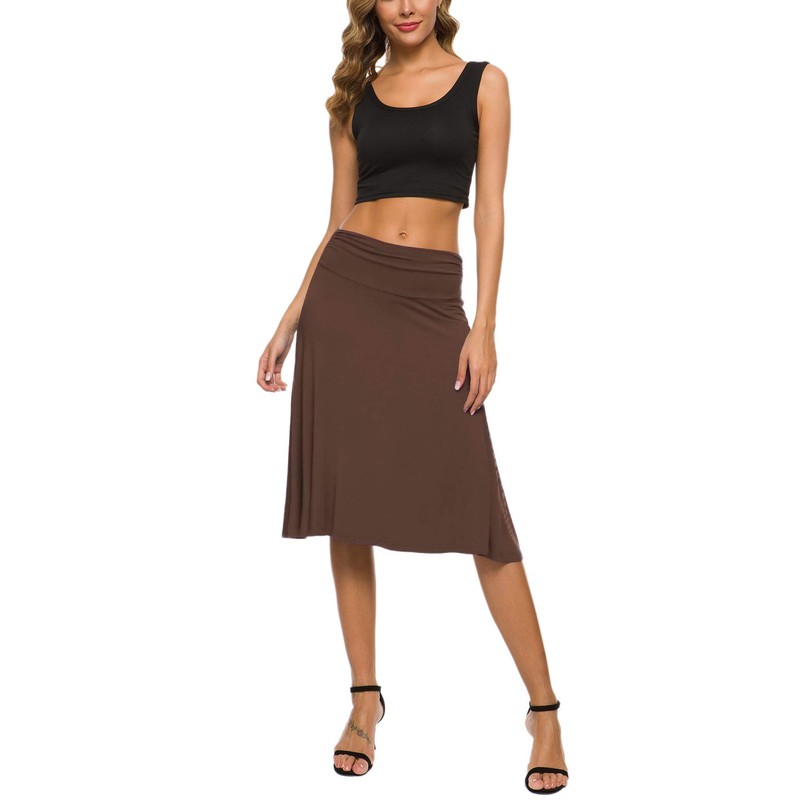 EXCHIC Women's Elastic Waist Plain A-Line Yoga Skirt - Coco, size: m