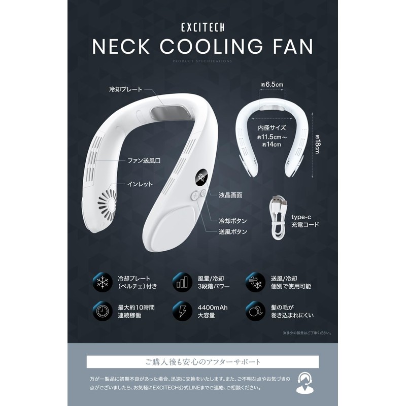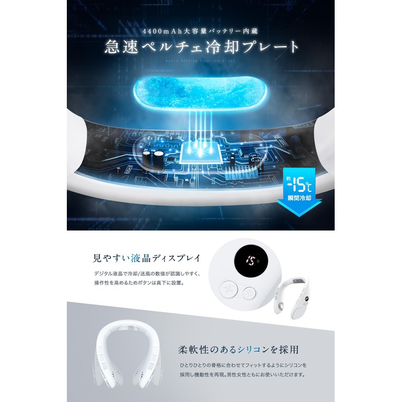 - (3 Levels of Air Flow / 3 Levels Cooling, Maximum Experience Temperature -3°F (-15°C)) Experience a neck cooling fan with the latest Peltier element in 2025 to cool down in about 3 seconds and experience temperature up to -5°F (-15°C). Flexible silicone makes it easy to put on and take off. Unisex sizing for both men and women. Double turbine fan designed to prevent hair from getting caught in