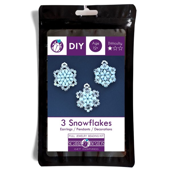 • If you have never tried beads before and would like to try it, this bead set is perfect for you. It has everything you need to create three different snowflakes from high quality Czech beads. It can be a wonderful Christmas gift as earrings, pendants or home decoration. You can make three snowflakes with any design, all the same or three different.