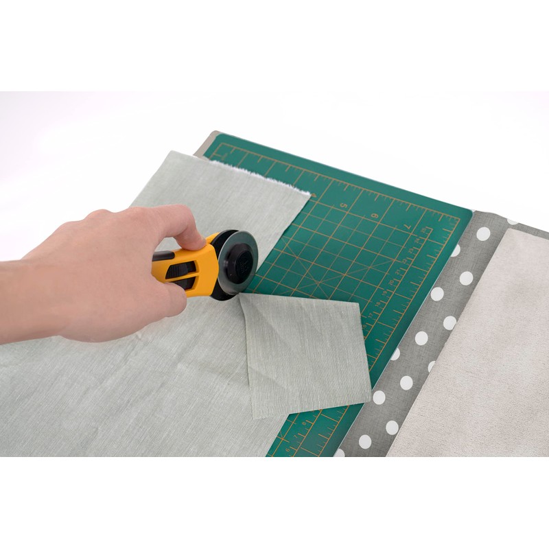 - [Internal features] Inside includes a self-healing cutting mat for precise cutting with rotary cutters, a velour sheet perfect for laying out quilting blocks and the fine grit sandpaper is great for holding slippery fabrics and materials in place when pattern marking.
