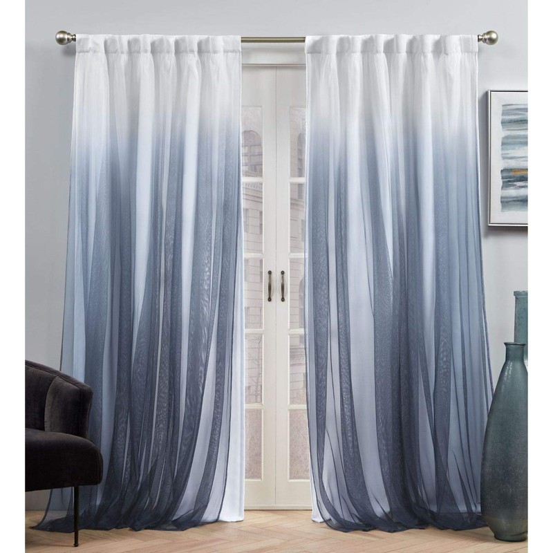 Dress up your windows with the Crescendo blackout curtain panels by Exclusive Home Curtains. Elegantly designed with a sateen woven blackout liner paired with an ombre sheer overlay, this curtain panel set offers multiple styling options for any space. Designed with Woven Thermax technology liner, they will block light, provide privacy and is energy efficient. They can be hung three ways: on a curtain rod up to 1-5/8" diameter using tabs, the rod pocket, or using clip rings (not included).