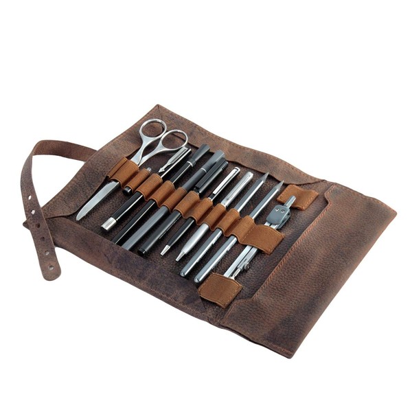 - Stylish pen roll made of premium buffalo leather for men and women measuring (approx.) 28 x 20 x 6 cm, size L, 170 g, available in rust red, brown, cognac brown, blue-black, black and grey