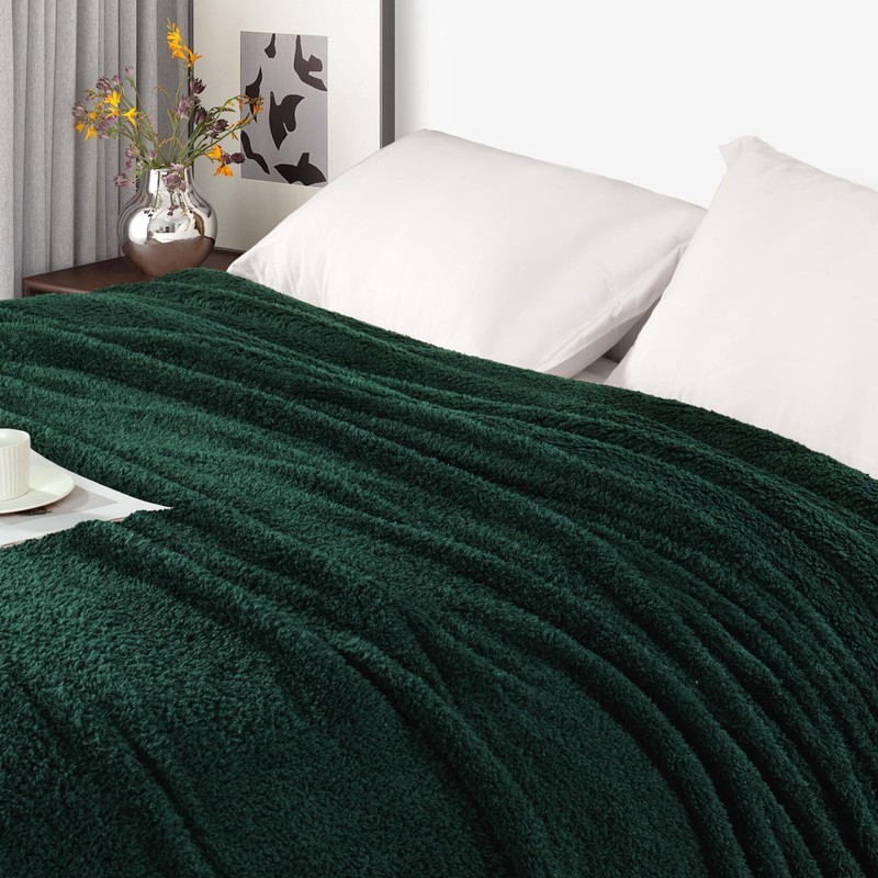 Exclusivo Mezcla Fleece Blankets Queen Size, Soft Warm and Fuzzy Blanket for Bed, Suitable for All Seasons, 90x90 Inches, Forest Green