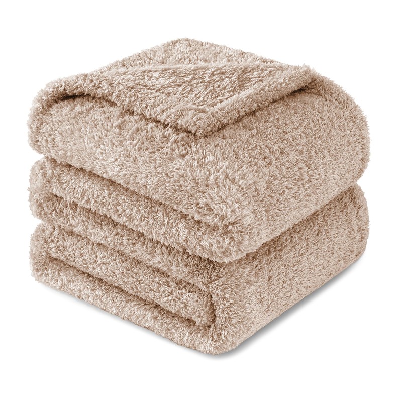 Exclusivo Mezcla Fuzzy Fleece Throw Blanket for Couch Sofa, Lightweight Fluffy Solid Velvet Blanket, Suitable for All Seasons, 50x60 Inches, Camel