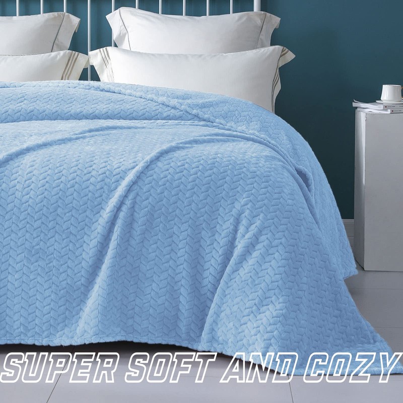 Exclusivo Mezcla Large Flannel Fleece Throw Blanket, 127x178 CM Sofa Throws, Soft Jacquard Weave Leaves Pattern Throws for Sofa, Baby Blue Blanket