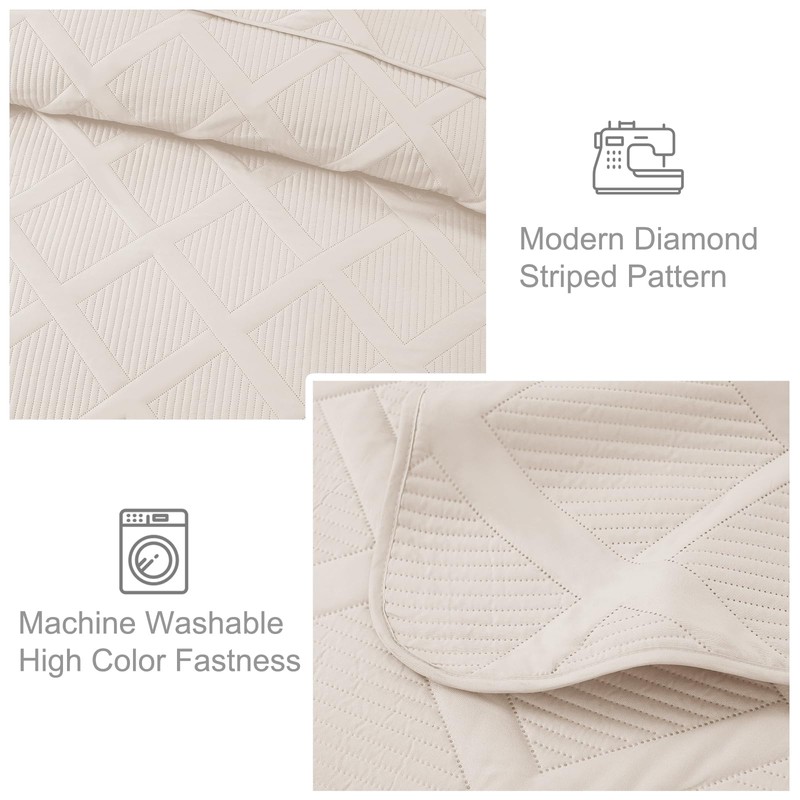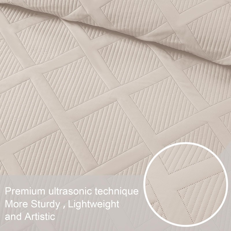 - Exquisite Home Decor: The basket-weave patterns are formed by ultrasonic high temperature embossing technology which makes the quilt king size more sturdy and lightweight. Modern simple diamond striped pattern on both sides combined with attractive colors is easy to match your bedroom decor, offering you an elegant and classic feeling