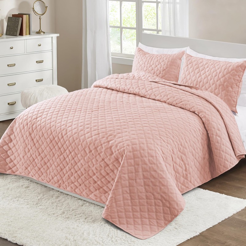 - Exquisite Home Decor: Modern grid patterns are formed by pressing at high temperature using new premium ultrasonic embossing technique which makes the quilts more lightweight, sturdy and artistic. Combined with attractive colors, the bedding set is easy to match your bedroom decor, offering you an elegant and classic feeling