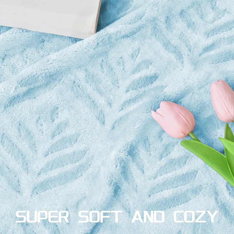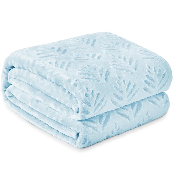 Exclusivo Mezcla Twin Size Fleece Blanket for Bed, Super Soft and Cozy Blankets All Season Use, Leaves Pattern, Plush Fuzzy Lightweight, Ice Blue, 60x80 Inch