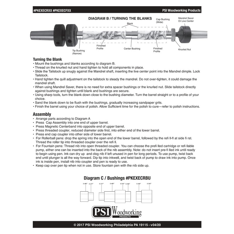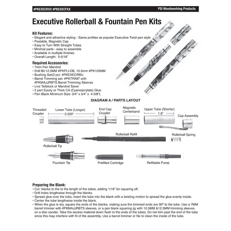 - Includes (1) PKEXECFGM Gun Metal Executive Fountain Magnetic Cap Penturning Project Kit