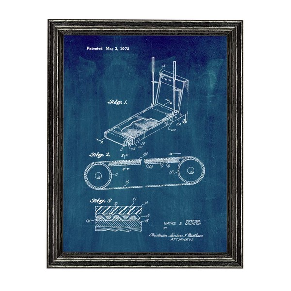 Own a piece of History with this great Drawing reproduced from the original US Patent for a Exercise Treadmill And Belt Support Apparatus. It was invented by Wayne E. Quinton and filed on April 10, 1970. It was issued on May 2, 1972 by the United States Patent and Trademark Office.