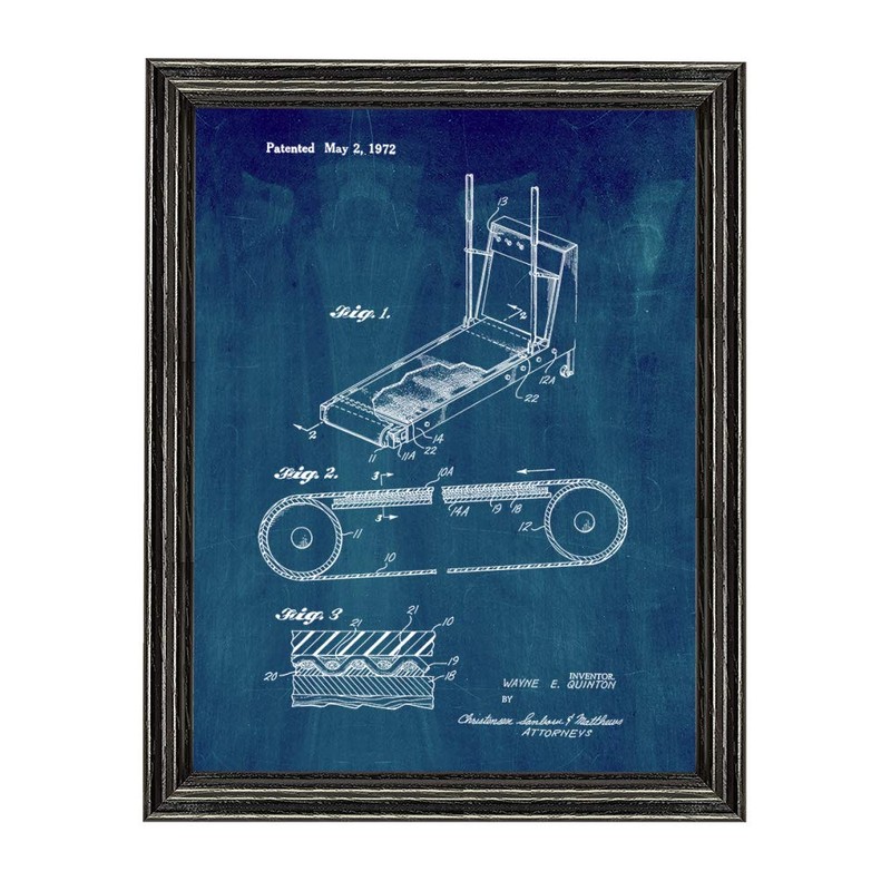 Exercise Treadmill Patent Art Midnight Blue Print in a Black Wood Frame (11" x 14") M12353