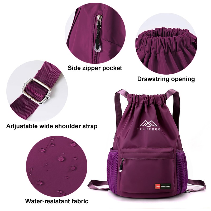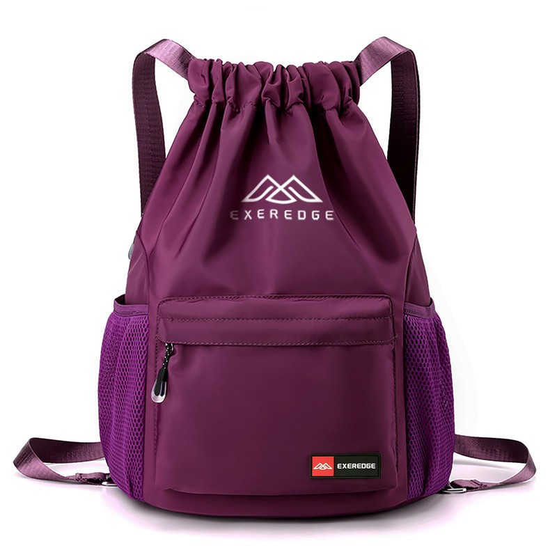 EXEREDGE Drawstring Backpack for Women Men Sport Gym Bag Water Resistant Backpack Sandproof Beach Bag With Mesh Pockets, Purple, Normal, Sporty Style