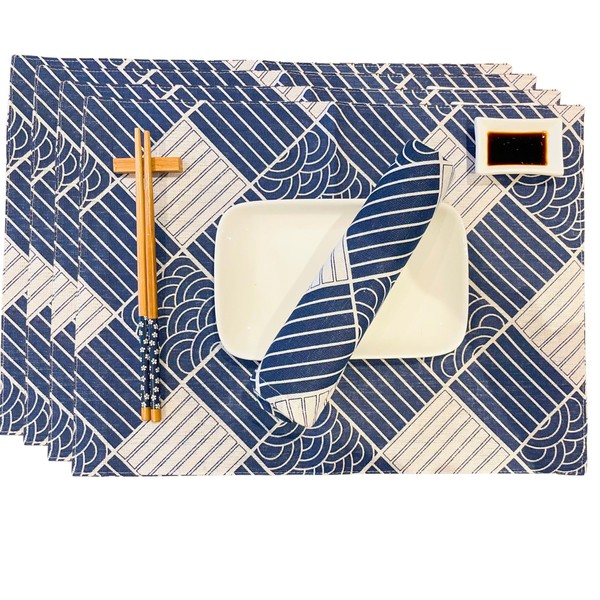 - AUTHENTIC DESIGN Enjoy the artistry of the calm white and blue ocean waves inspired by classic Japanese paintings. These kitchen towels, placemats and napkins bring a touch of traditional elegance to your dining area and perfectly complement the tranquility of a sushi set.