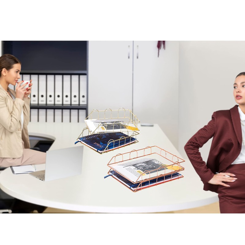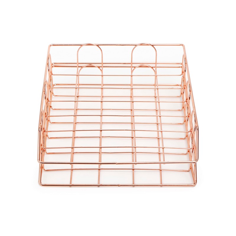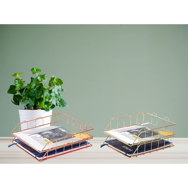 EXERZ Paper Sorter, Pack of 2, Stackable Trays, Desk Organiser, File Holder - Multifunctional for Office, School, Study (Rose Gold)