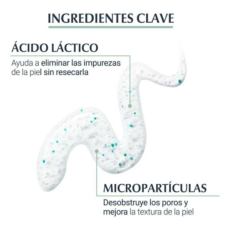 Un exfoliante con ácido láctico y partículas para refinar los poros que eliminan la obstrucción de estos, reducen los puntos negros y las imperfecciones y aporta a la piel una textura más refinada.