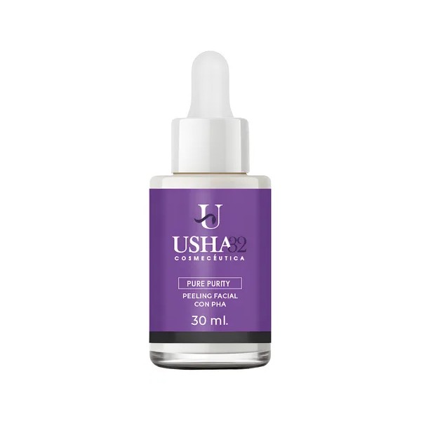 - PURE PURITY – Peeling Facial con PHA (30 ml) El Peeling Facial Pure Purity de USHA32 Cosmecéutica ofrece una exfoliación suave y efectiva gracias a su fórmula con PHA (ácidos poli