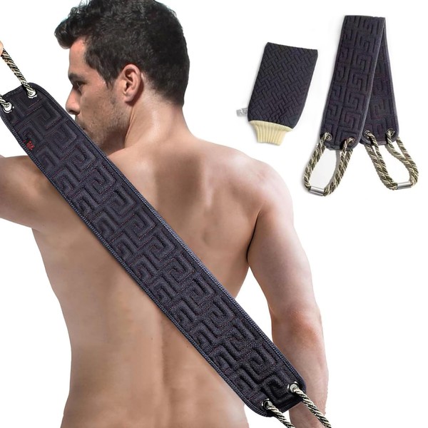 Exfoliating Back Scrubber with Handles - 38" Double-Sided Bath Scrubber for Deep Cleansing, Men & Women, Includes Free Mitt