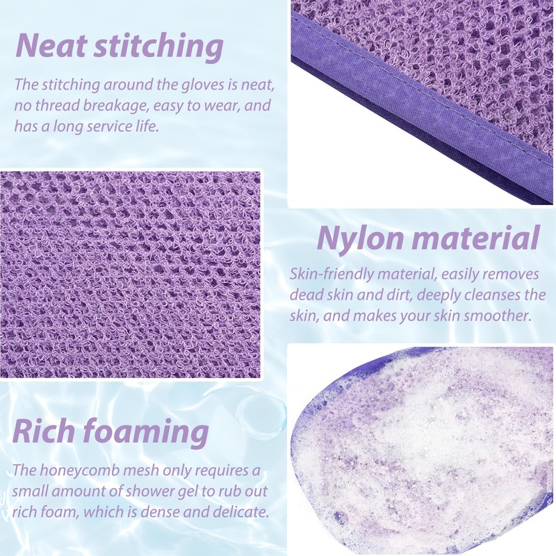 - High-Quality Exfoliating Gloves: The exfoliating mitts are made of soft and comfortable nylon material. These African net sponge bath gloves lather easily and provide strong friction to remove dead skin cells effectively.