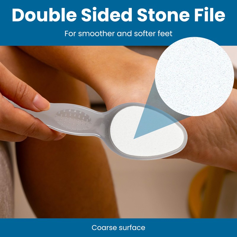 - Double-Sided Stone File – Coarse surfaces remove dead skin, calluses, and dry patches for noticeably smoother feet.