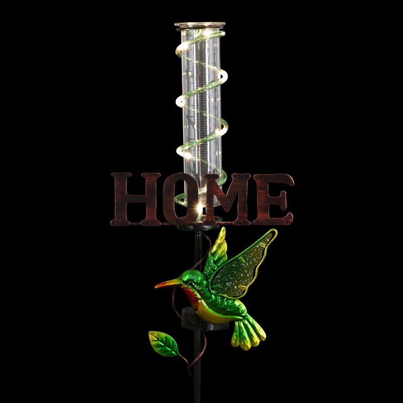 - Hummingbird Rain Gauge Stake: This elegant metal and glass rain gauge hummingbird garden decor is easy to read and warmly welcome visitors to your home. Our 32” tall decorative rain gauge outdoor stake with vibrant hummingbird yard art is hand-crafted from durable glass & metal to add the look of luxury to your yard.