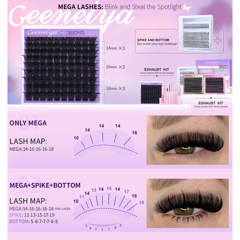 - [EXHAUST]Geeneiya 5 Styles Lash Clusters Kit, Volume/ Mega/ Full/ Bottom Eyelash Clusters Extensions with Everything You Need for Beginners and Proficient, DIY at Home Easily