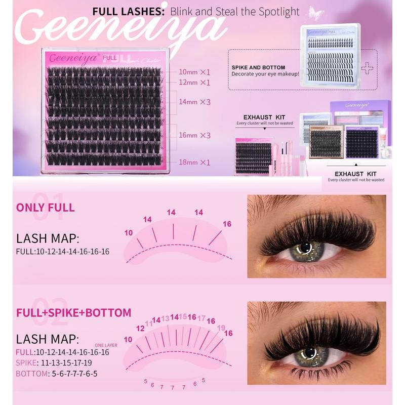 [EXHAUST]Geeneiya 5 Styles Lash Clusters Kit, Volume/ Mega/ Full/ Bottom Eyelash Clusters Extensions with Everything You Need for Beginners and Proficient, DIY at Home Easily:_[FULL]-LASH