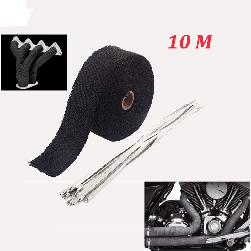 Exhaust Heat Wrap, Professional High Performance Exhaust Heat Wrap Cable One Roll and 10pcs Cable Ties Pipe for Motorcycle 10m x 50mm (Black)