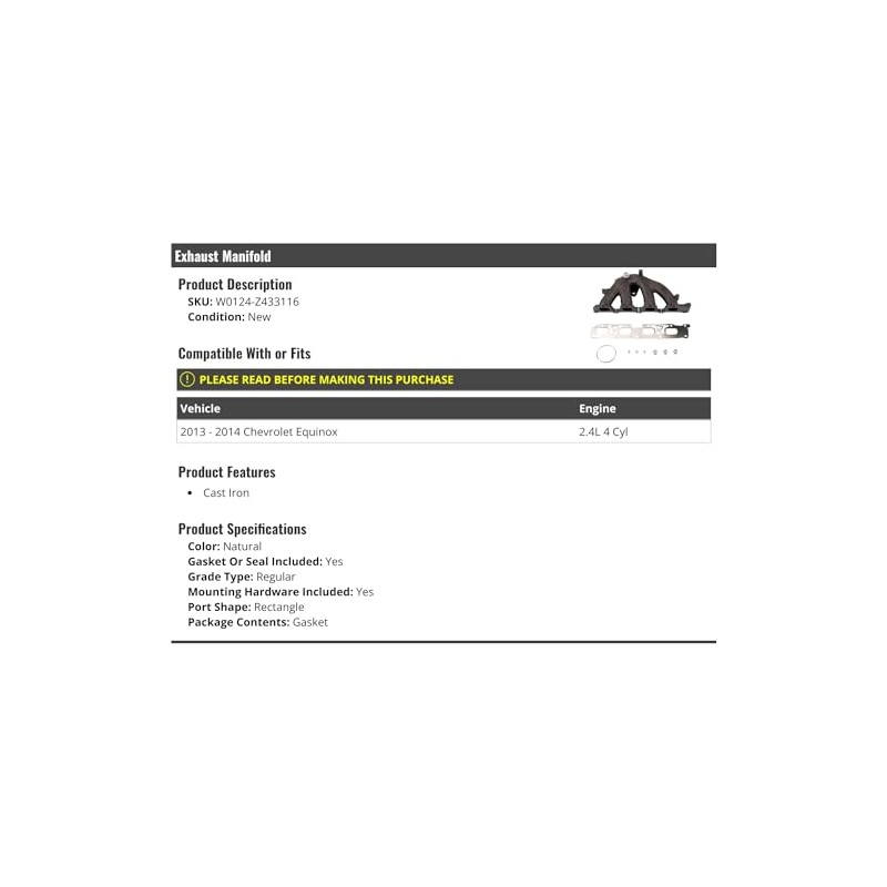 Exhaust Manifold - Compatible with 2013-2014 Chevy Equinox 2.4L 4-Cylinder