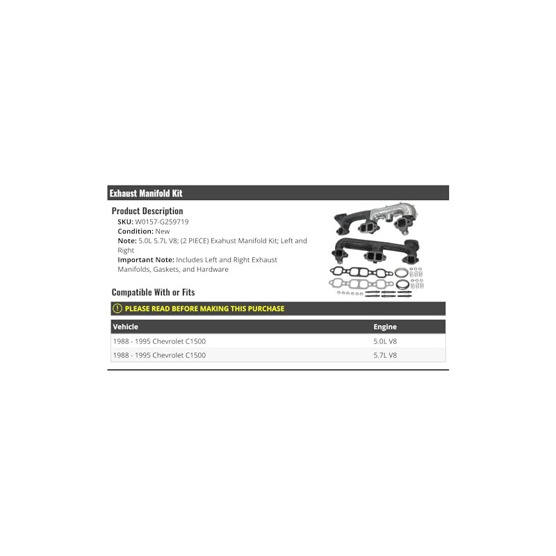 - 5.0L 5.7L V8; (2 PIECE) Exahust Manifold Kit; Left and Right