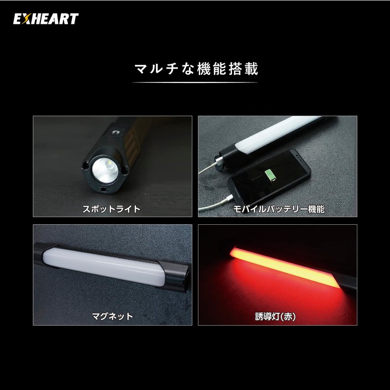 EXHEART Rechargeable LED Multi Light (Stepless Dimming / Up to 1000 lm) Multi-functional Light, Cordless Magnet, Built-in Power Bank / USB Rechargeable, Disaster, Disaster Prevention, Construction, Work Light, Work Light (Red/White/Spotlight)