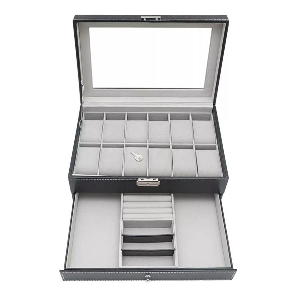 Exhivit Estuche Exhibidor Joyero / Porta Reloj 12 Reloj Negro