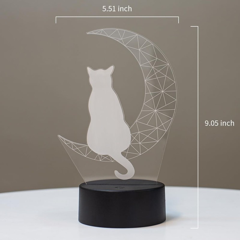 - Incluye: 1 lámpara de gato luna + 1 base negra + 1 manual de usuario + 1 cable micro USB