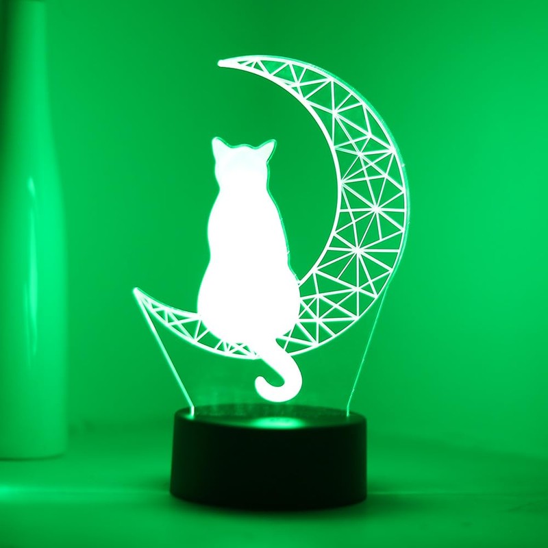EXIGENT - Lámpara de luz LED 3D para gato y luna, acrílico con ilusión nocturna intermitente (Moon_Cat)