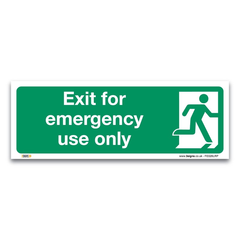 Exit for emergency use only Sign, 1mm Rigid Plastic 42x15cm, British Standard Fire Safety