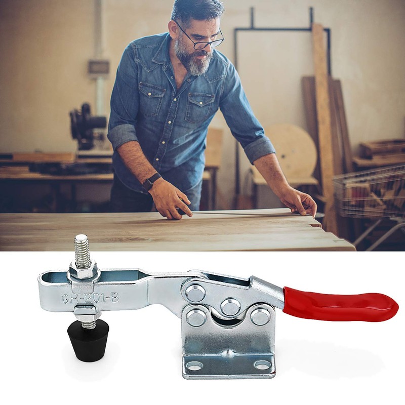 - Safety design: the overall structure adopts an ergonomic design, which is both aesthetic and comfortable, thereby improving product performance. The toggle clamp is practical, has an adjustable rubber pressure head and uses a rubber head spindle to quickly press on a metal or circuit board. The red handle protects your hands from injury during use.