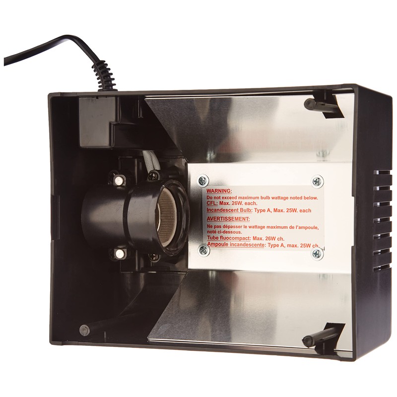- Accommodates compact fluorescent bulbs or low wattage incandescent bulbs (max. 26W)