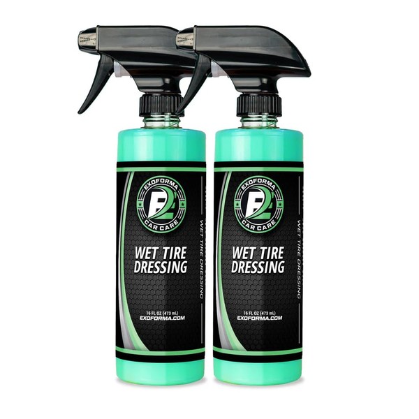 ExoForma Wet Tire Dressing Spray - Extremely High Shine Tire Dressing for That Wet Look - No Sling, Non-Greasy Silicone Formula with UV Protection - Easy to Apply, Minimal Cure Time - 16 fl oz, 2 Pack