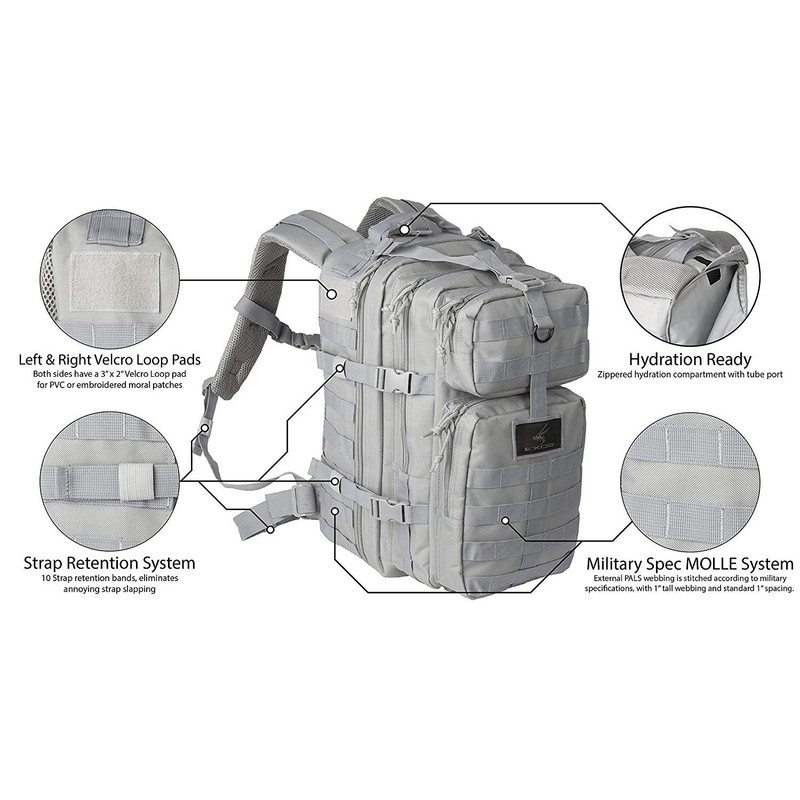 Exos Bravo Tactical Assault Backpack Rucksack. Great as a Bug Out Bag, Daypack, or Go Bag; for Hiking, or Camping. Molle equipped & hydration pack ready (Grey)