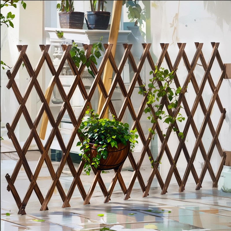 - 🌲 【CLIMBING LATTICE】: This lattice trellis is very suitable for climbing ivy, wisteria, ivy, rose and other vines. The stretchable characteristics of the wooden fence make it easy to support plants at different heights. You can use it on the outdoor wall or in the garden.