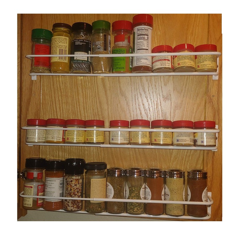 Expandable Rack (white, set of 3)-Mount on cabinet door/pantry/wall-Convenient storage for spices, K-cups, medications, acrylic paints & more-Great for use in kitchens, bathrooms & RV/campers