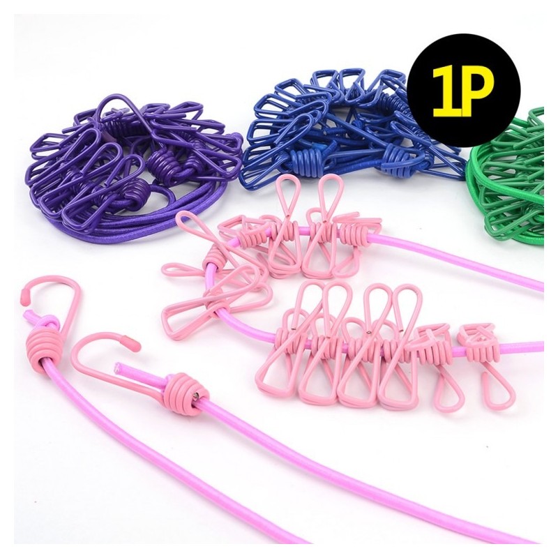 Expandable Rubber Clothesline with Clips Set 2ea