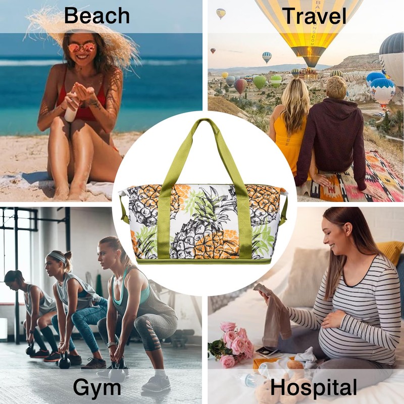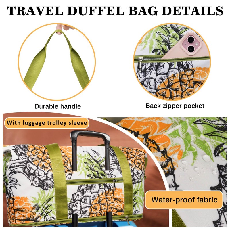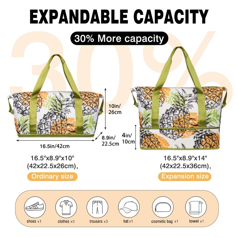 Expandable Travel Duffel Bags for Women Large - Gym Bag Waterproof Pineapple Weekender Beach Tote Carry on Bag with Luggage Sleeve for Spirit Airlines Personal Item Bags Overnight Mom Hospital Duffels