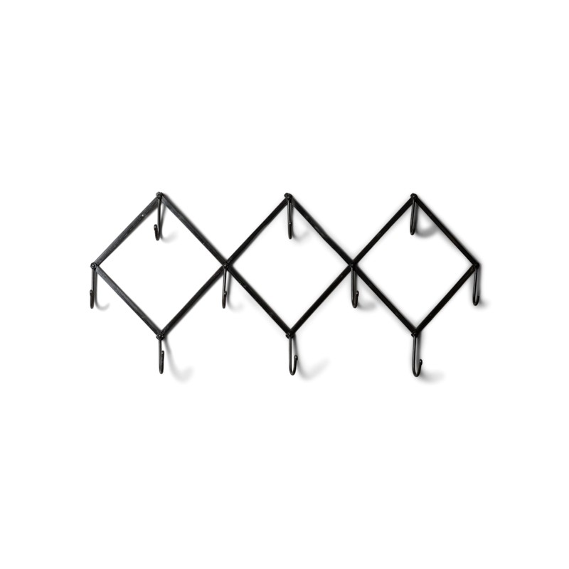 You will find multiple used for our Expandable Metal Rack. Adjustable to the length or width you need it most, in a kitchen, mudroom or garage space. Crafted of powder coated, iron metal for protection and durability for years to come. Hang vertically or horizontally and arrange the included 10 hooks as your needs change. Hang your potholders and towels in the kitchen, small tools in the garage or keys and dog leashes in the entryway. No hardware needed to hang. To clean, wipe off with a damp cloth. Imported. Approximately 42"L when expanded.
