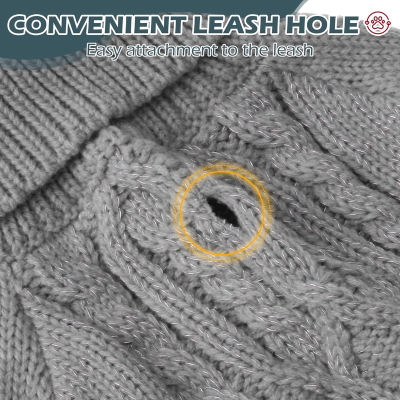 EXPAWLORER Thermal Knitted Dog Sweater for Small Medium Large Dogs, Turtleneck Cable Knit Dog Cold Weather Clothes Sweatshirt Outfits for Winter, Pullover Pet Jumper for Puppy Cats, Grey L