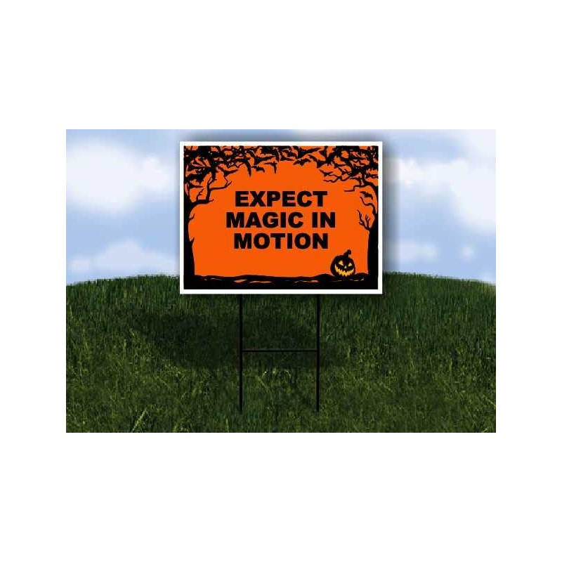 EXPECT MAGIC IN MOTION Halloween Bats and Jack O Lantern 1 Double Sided 18x24 in Yard Road Sign w/stand