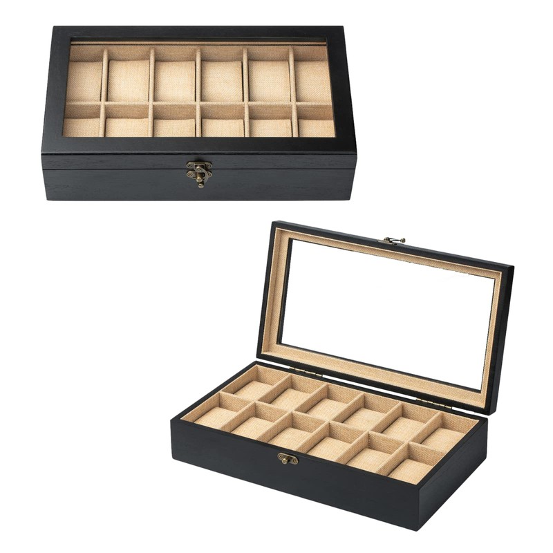 - [Large Storage] Wooden watch box is designed with 2-inch slots, accommodating watches with the largest dial diameter of 51mm. Available in 10 styles with 6, 12 slots and 6 colors, this watch box provides ample space for most people's needs