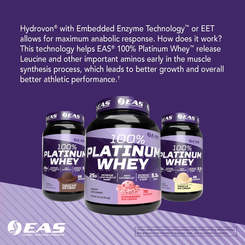 Experimental and Applied Sciences EAS 100% Platinum | 3 Ultra-Platinum Whey Proteins | Increase Size & Strength | 25g Protein, 5.5g BCAAs | 2 Pound (Vanilla Ice Cream)